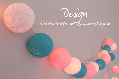 Ideal für kleine Traumsucher! Entfalten Sie mit unserer Lichterkette aus Baumwollkugeln tolle Lichteindrücke für das Kinderzimmer. Durch das warme und farbenfrohe Licht eignet sich die Kinderlichterkette mit warmweißen Glühlampen ideal als sanftes Nachtlicht beim Einschlafen. Ist diese elegante und originelle Lichterkette eingeschaltet, funkeln die Kugeln aus Baumwolle einen schönen Schein und bringen über das ganze Jahr gedämpftes Licht in das Kinderzimmer. Schaffen Sie für sich und Ihr Kind eine Wohlfühlatmosphäre und entdecken Sie unsere Lichterketten in großer Farbvielfalt. Schalten Sie Ihre neue Lichterkette ein und genießen Sie das gemütliche Ambiente. Die Reihenfolge der Kugeln ist jederzeit nach eigenem Belieben veränderbar! Sie können die cotton balls einfach abschrauben und an einer anderen Stelle wieder anschrauben. So wird Ihre Lichterkette zum Unikat. Die handgemachten Baumwollkugeln kommen fertig verpackt und aufgefädelt auf der weißen Lichterkette! Probieren Sie es einfach aus, schalten Sie die Lichterkette einfach an und genießen Sie die tolle Lichtatmosphäre!